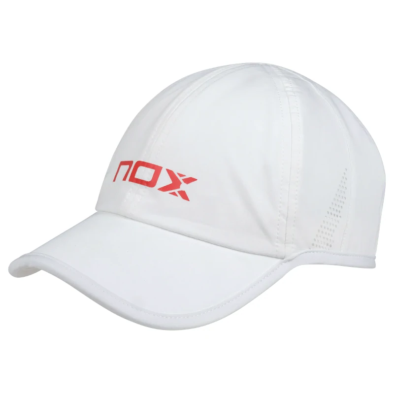 La Gorra Nox Blanca Logo Rojo, en color blanco con el logo en rojo. Protéjete contra el sol y el sudor.