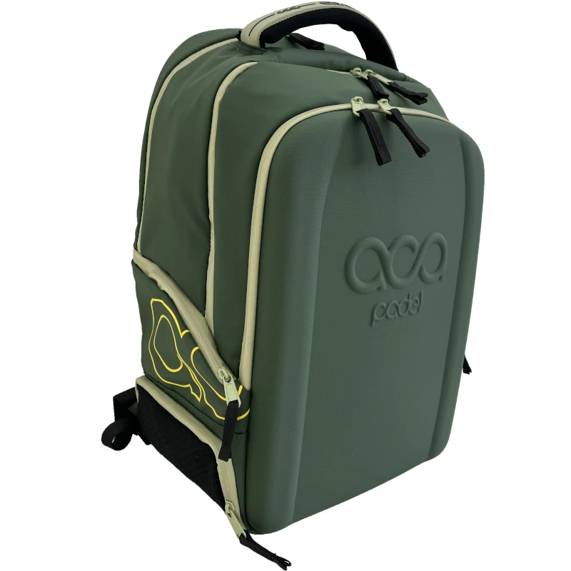 La Mochila Aca Padel Back Pack Green, diseñada con un bolsillo para trasportar 2 palas, un bolsillo central para llevar ropa y todo lo que necesite y un bolsillo lateral para llevar las zapatillas.