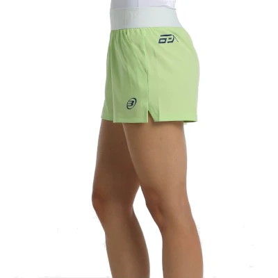 El Short Bullpadel Berbi Verde Manzana, fabricado en tejido bielastico de poliester con elastano que permite un secado rapido.
