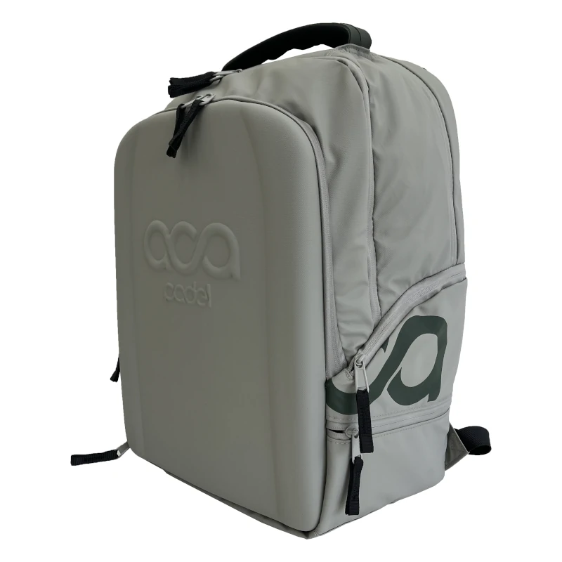La Mochila Aca Padel Back Pack Grey, diseñada con un bolsillo para trasportar 2 palas, un bolsillo central para llevar ropa y todo lo que necesite y un bolsillo lateral para llevar las zapatillas.