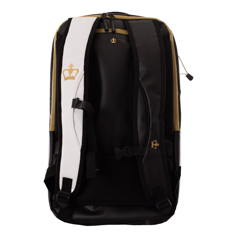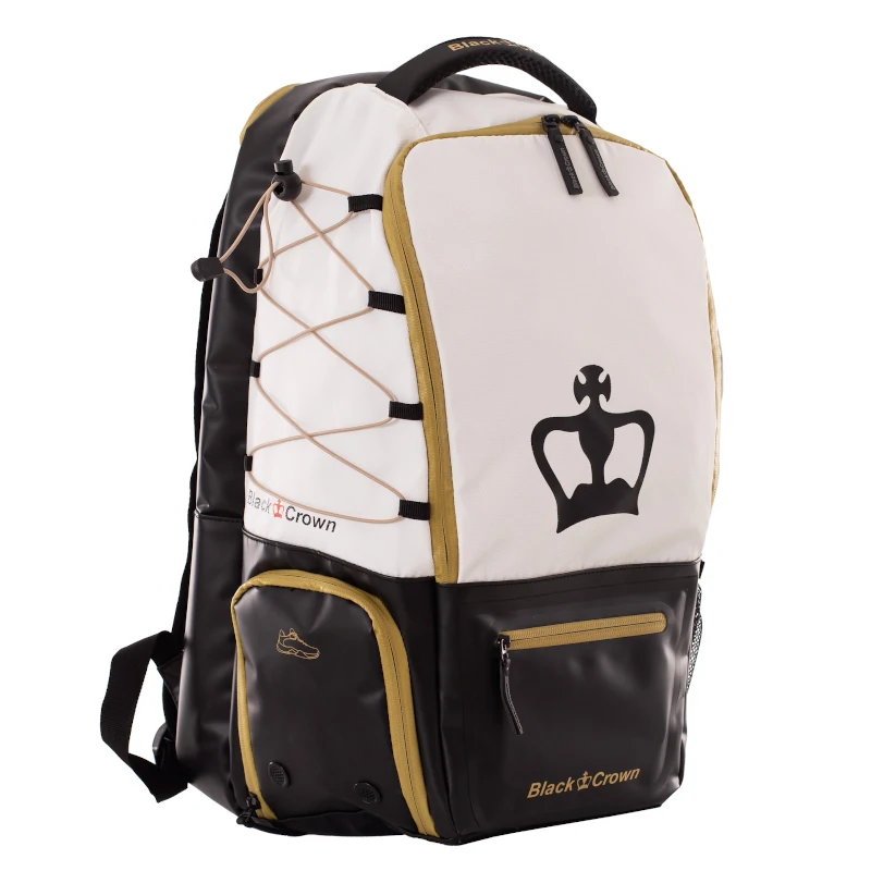 La Mochila Black Crown Raptor V2 Blanco/Dorado, ha sido diseñada en exclusiva para nuestros jugadores, cuidando cada detalle para ofrecerte comodidad, funcionalidad y estilo. Es perfecta tanto para tus partidos de pádel como para cualquier otro plan, gracias a su diseño elegante y versátil.